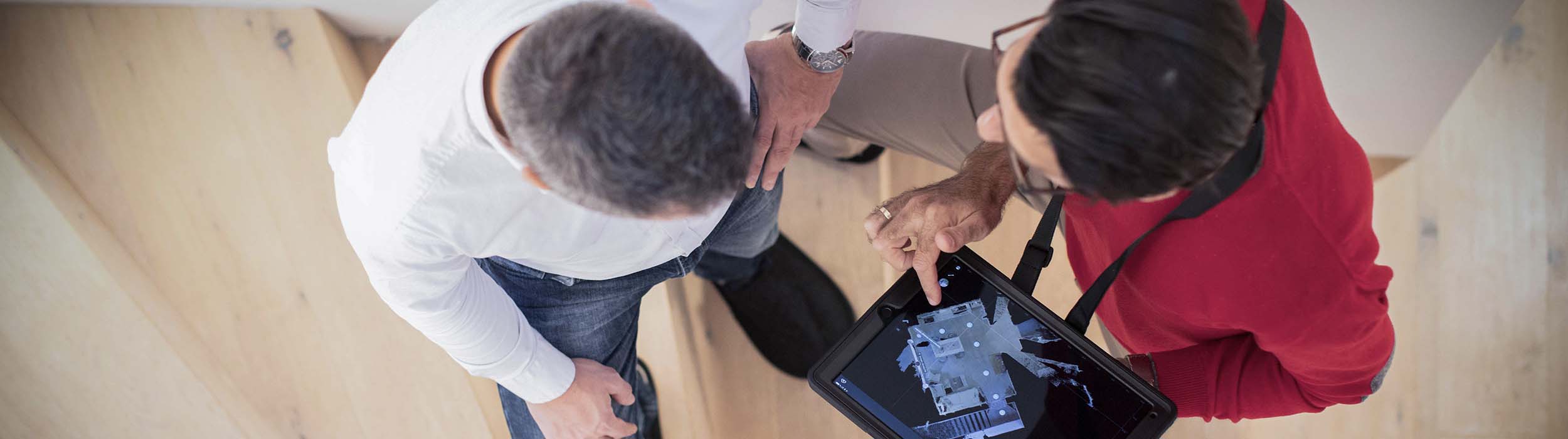 A specialised 3D scanner (Lidar) and proprietary software map your surroundings. The high scanning speed enables comprehensive scans to be produced in a short time and allows even complex geometries to be captured.