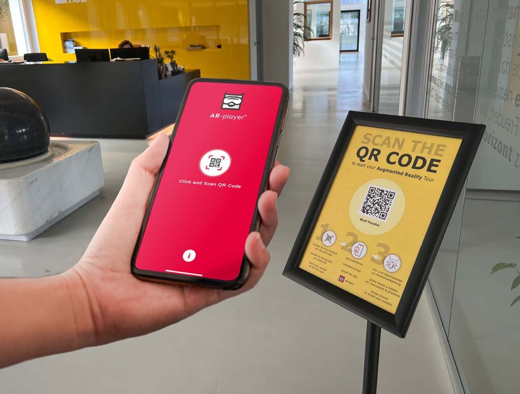 Con la realtà aumentata (AR), i contenuti digitali del vostro tour virtuale diventano visibili direttamente in loco sul dispositivo mobile dei vostri visitatori.